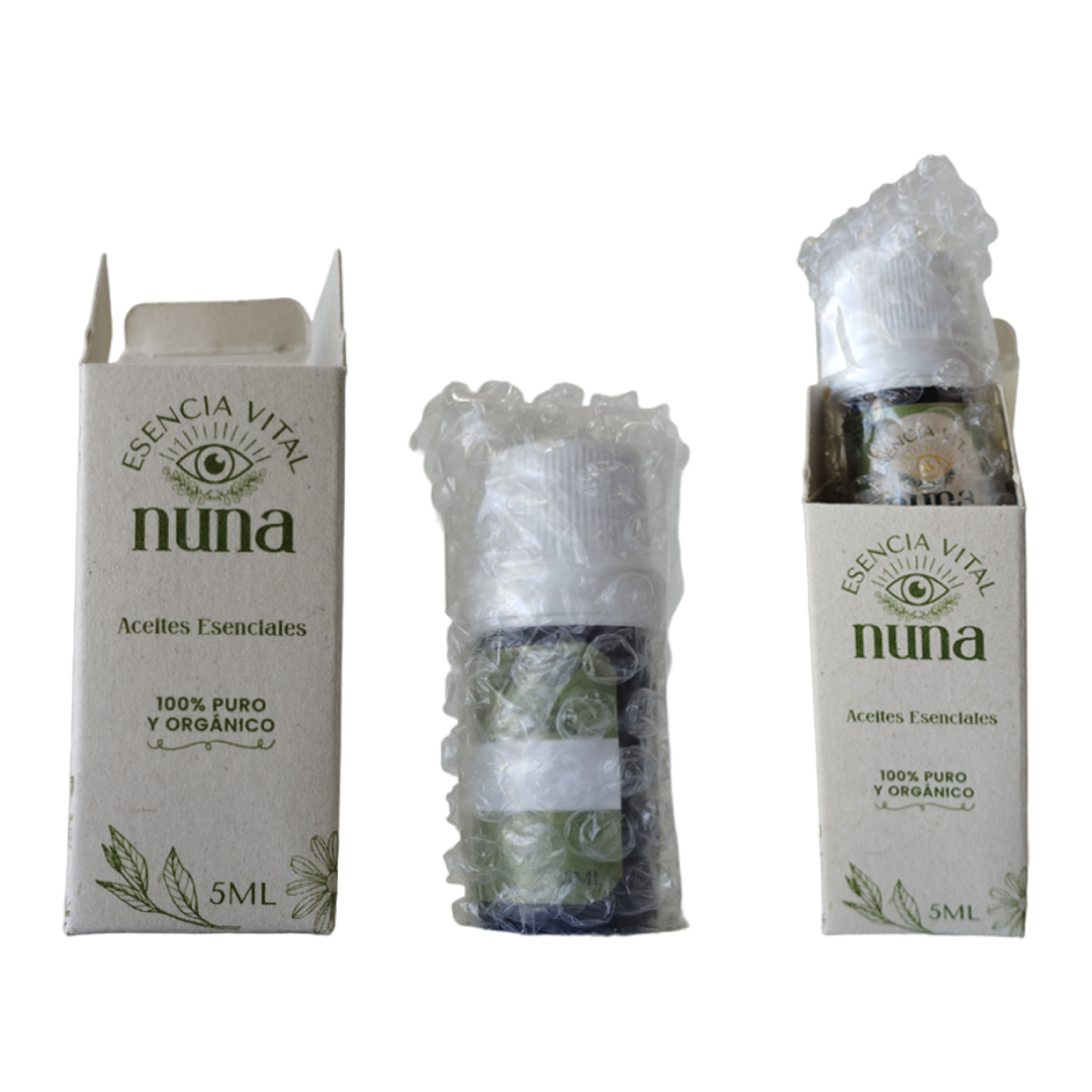 Cada frasco de 5 ml viene en un empaque ecológico, seguro y diseñado para conservar su frescura y potencia. Es un producto artesanal, natural y con altos estándares de calidad.