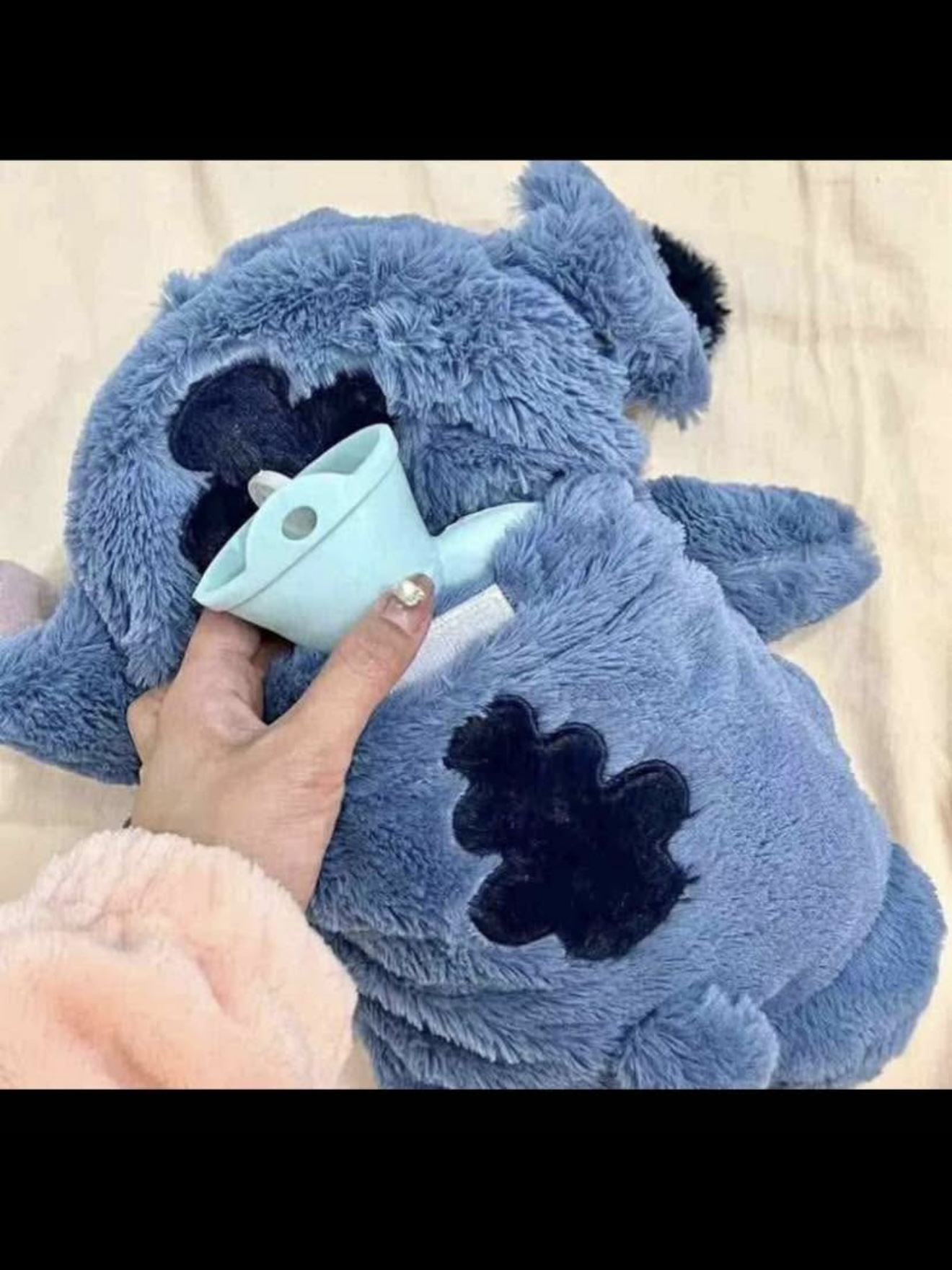 Introduce la bolsa en el peluche.