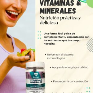 Las gomas de vitaminas y minerales BioWell están diseñadas para complementar la alimentación diaria de manera práctica, deliciosa y fácil de consumir. Su fórmula aporta micronutrientes esenciales que contribuyen al bienestar general, la energía y el funcionamiento adecuado del organismo.
