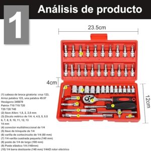 Este completo juego de 46 piezas es ideal para reparaciones en el hogar, trabajos de precisión, mantenimiento de motos, bicicletas, automóviles y proyectos de bricolaje. Su diseño portátil y resistente garantiza que siempre tengas la herramienta adecuada cuando la necesites.