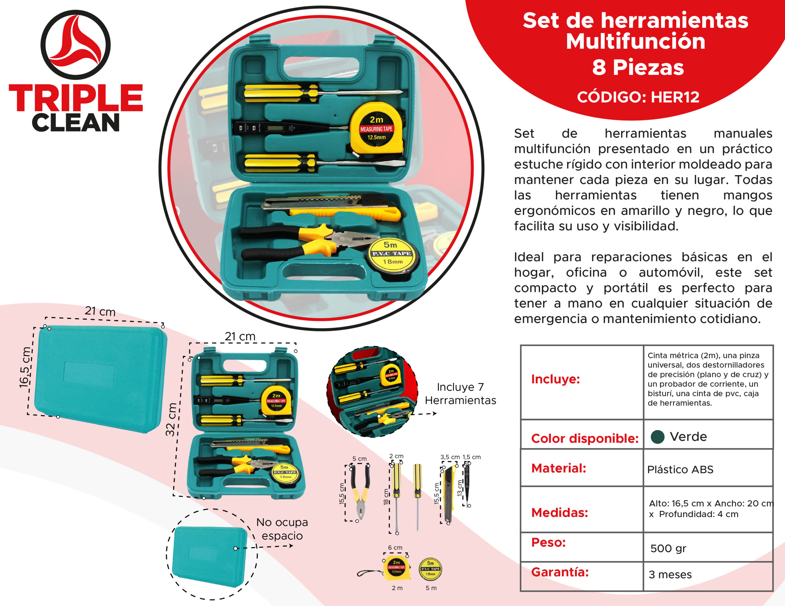 Este producto está diseñado para reparaciones básicas y uso doméstico. No sustituye herramientas profesionales industriales. Revisa el contenido del kit al recibirlo.